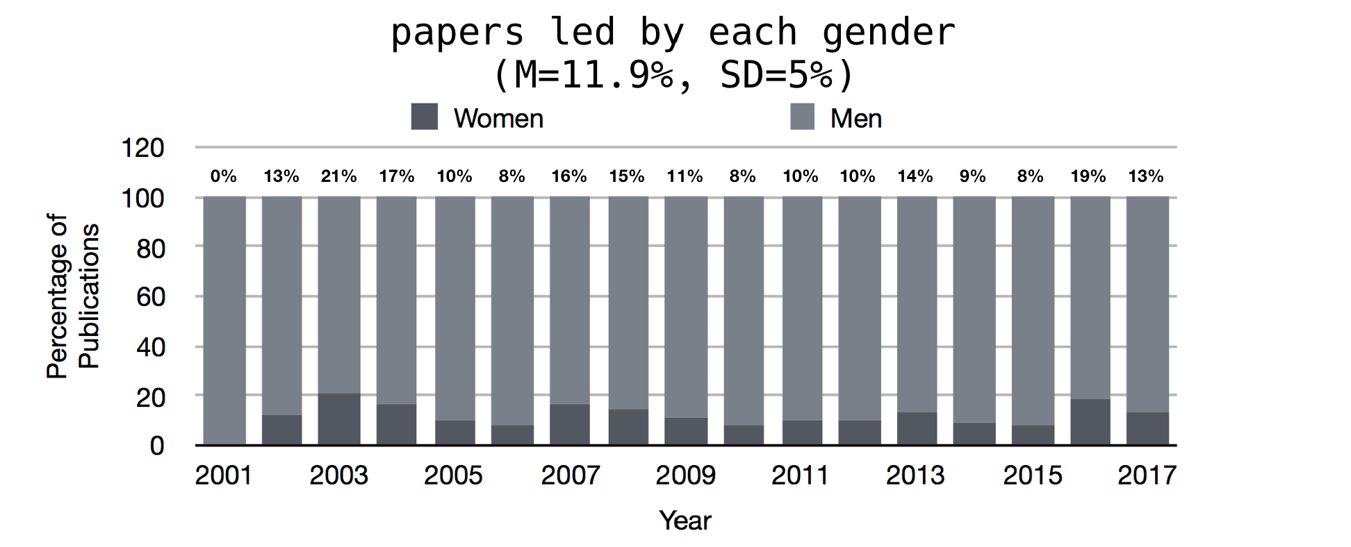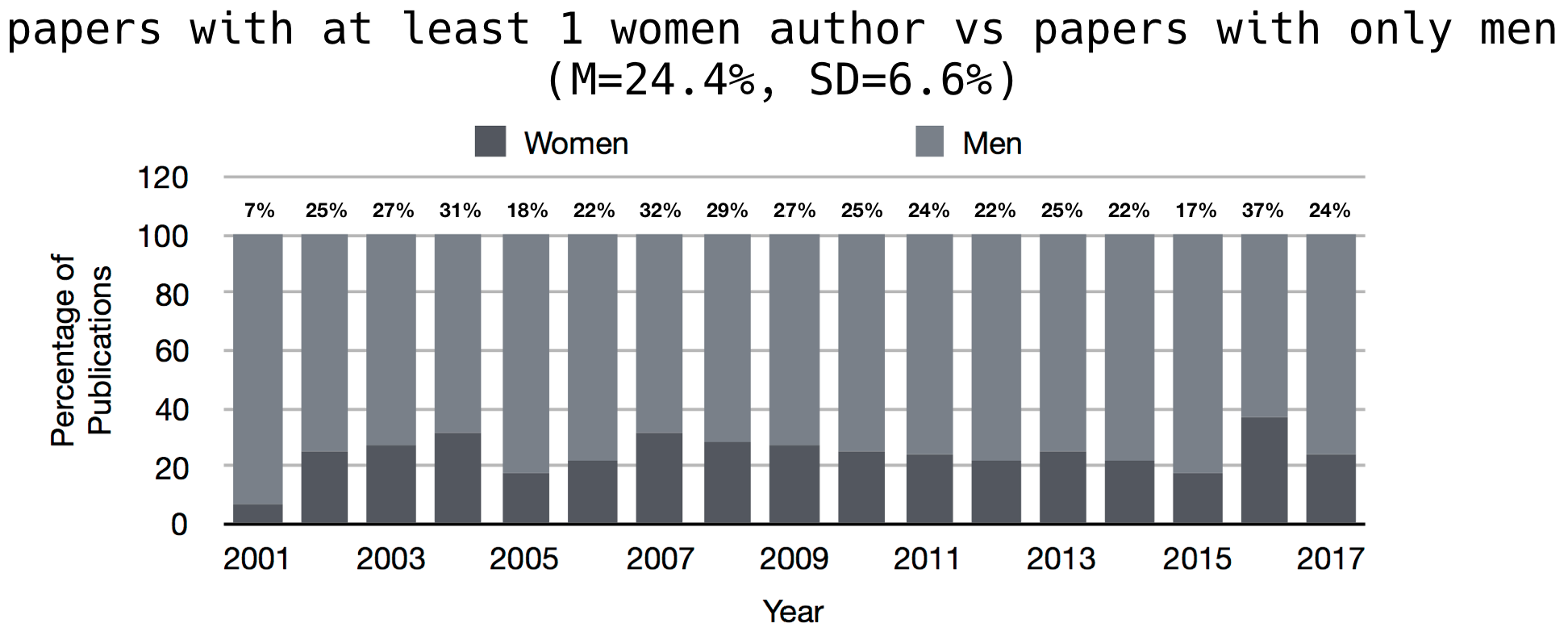 Percentage of Publications by Gender (2001-2017)
