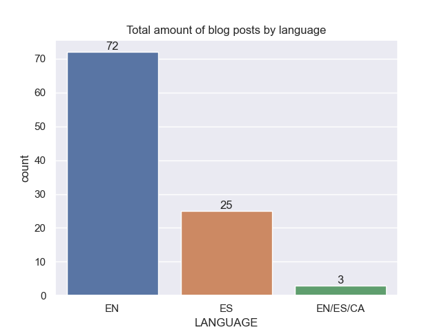 As shown in Figure 6, most of the blog posts have been written in English (72). The second language is Spanish (25) and three were multilingual, written in Catalan, Spanish and English.