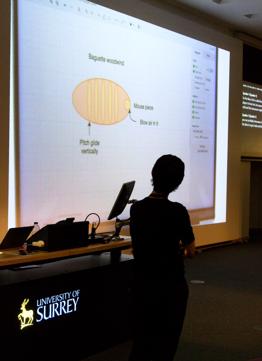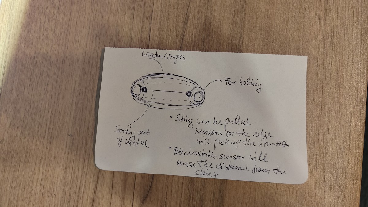 Below you can find two examples proposed by the workshop participants: an example of a musical interface based on strings and another example based on a string on a wooden corpus.