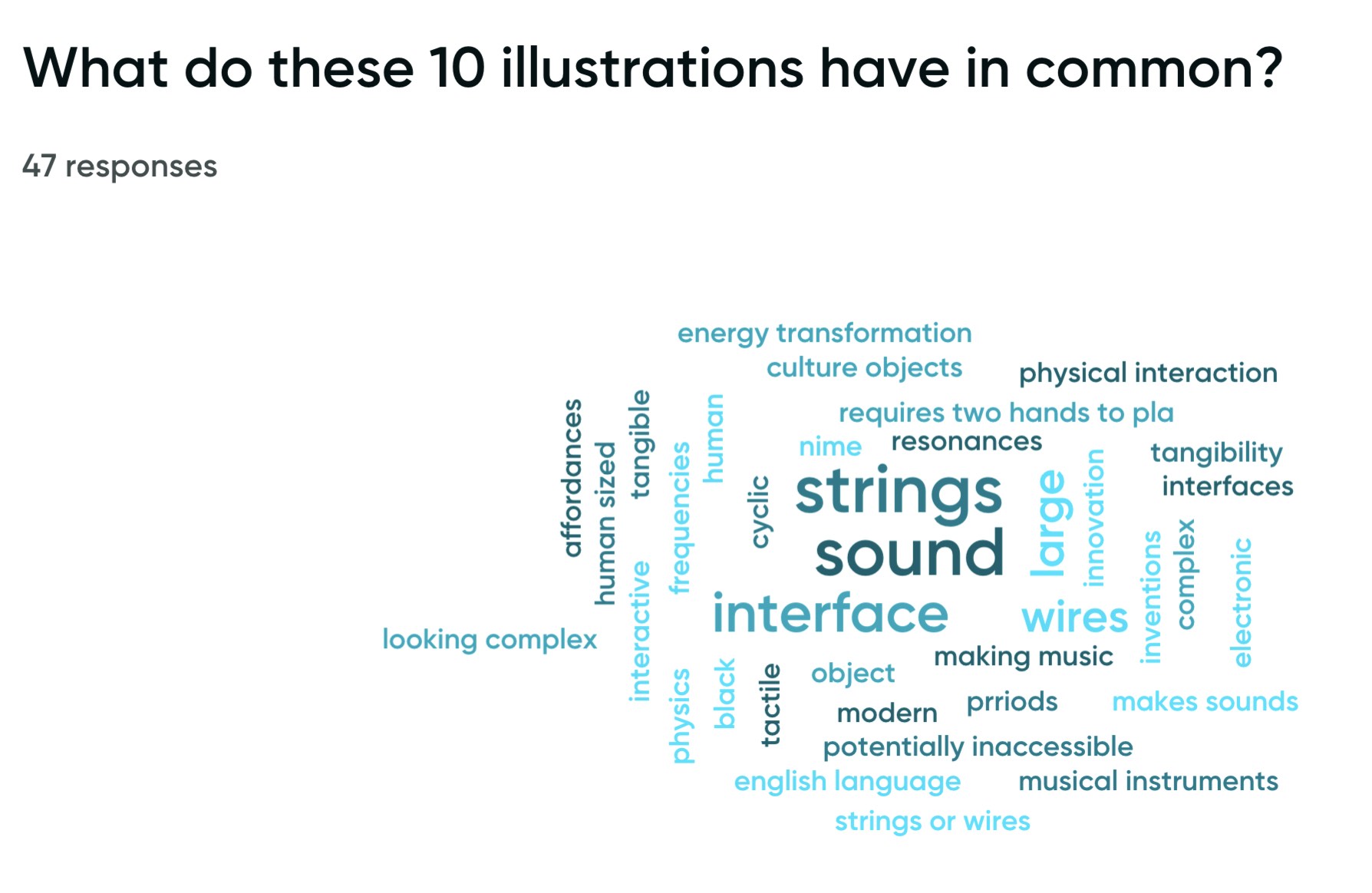 By prompting responses to 10 illustrations of the instruments without any reference and then 10 words of the names of the instruments without any reference, we navigated through the research question of How fabulations of design semantics, through the lens of feminist HCI principles, can reshape our understanding of gender bias in object design within the realm of DIY musical instruments constructed by women builders?.