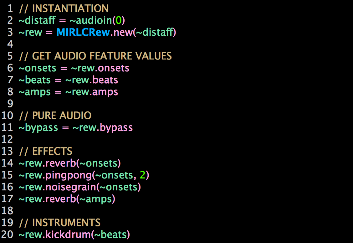 Description: MIRLC is an ongoing project on providing easy-to-use MIR tools for the live coder.