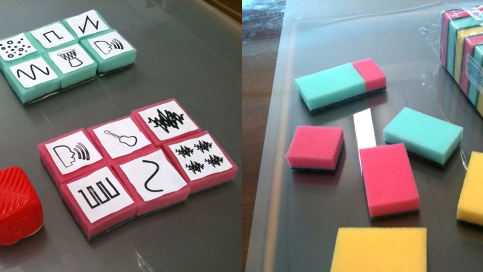 Description: SoundXY2 approaches real-time individual auditory feedback through stereo spatialization in a tangible tabletop system for music performance. A collection of varied sounds was represented by tangible objects. The sounds ranged from basic sounds (e.g. noise waves, sine waves) to sound samples from Freesound.org. Stereo spatialization was applied to allow listeners to localize the sounds depending on the position of the tangibles on the table. The audio engine and program logic was built with SuperCollider.