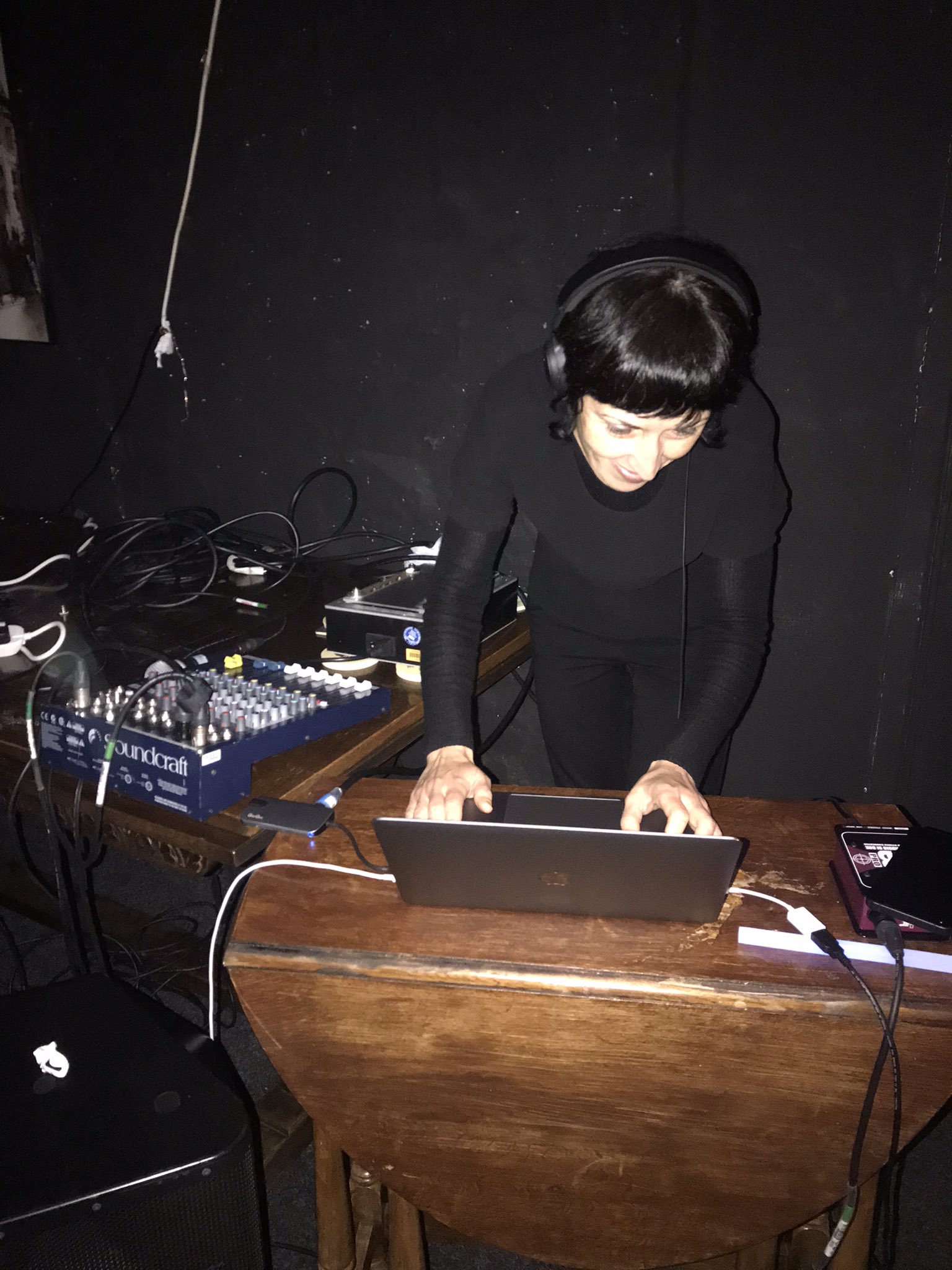 Recently she’s been experimenting with how she can make music in collaboration with a digital companion to create music from large collections of sound data from Freesound.org.