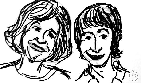 Angela Brennecke and Anna Xambó in representation of the new Erasmus cooperation between MA Creative Technologies (Filmuniversität Babelsberg Konrad Wolf) and Music, Communication and Technology (NTNU / UiO). Illustration by Angela Brennecke. Potsdam, June 2019.
